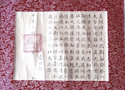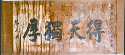 1916年辛亥首義志士大黃申薌之母胡太夫人七十壽誕之際,時任民國大總統(tǒng)黎元洪為之題寫”得天獨(dú)厚“橫披,以賀其壽。據(jù)紀(jì)念館館長梁華平介紹,受以往對其政治評價的影響,黎元洪手書真跡未受應(yīng)有重視,大多散失。這件“得天獨(dú)厚“橫披手跡更是彌足珍貴。 (記者 蔣太旭 通訊員 何廣 實(shí)習(xí)生 趙紅)