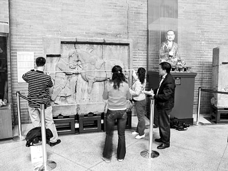 賓大博物館中國館中的文物修復(fù),并未影響其對外開放,專家們的工作,完全是敞開式的,觀眾可隨意參觀。許多觀眾對西安的文物專家表示欽佩。一位名叫程佳來自北京的中國留學(xué)生在“兩駿”現(xiàn)場告訴記者:賓大博物館的中國館不錯,從青銅獅子到二駿馬,從慈禧的水晶球到一尊尊的佛像。讓我們這些留學(xué)海外的學(xué)子既自豪又感慨。自豪是因?yàn)檫@一件件藝術(shù)展品都滲透出我們博大精深的幾千年文明,感慨是因?yàn)檫@些展品也同樣記錄了當(dāng)年屈辱的歷史。