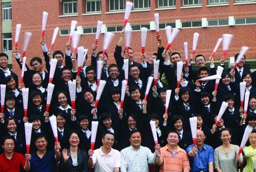 昨天(5月7日,下同)下午,“火炬”送到學(xué)校。負(fù)責(zé)合影的攝影師,拍了三張照片,其中兩張,很正式,最后一張照片,是62個(gè)學(xué)生和16位老師共同揮舞78個(gè)“火炬”。