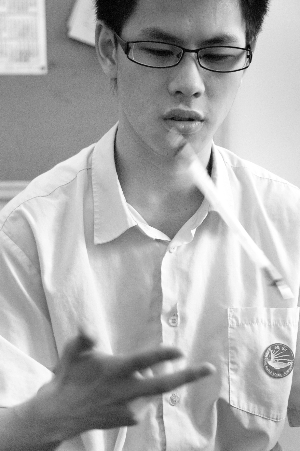 創(chuàng)辦筆舞社的高三學(xué)生區(qū)志杰想不到,他迷上轉(zhuǎn)筆,竟是緣于初中某考場(chǎng)上的“驚鴻一瞥”:監(jiān)考老師將筆轉(zhuǎn)出各種花式,“好漂亮啊,在早早做完試題后,我就一直盯到了交卷!”