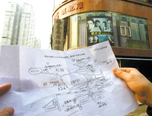 他們精心繪制的網(wǎng)吧地圖,清晰標注了網(wǎng)吧的具體位置,周圍有什么建筑物。這10家網(wǎng)吧呈圓形狀排列,將學校團團包圍。