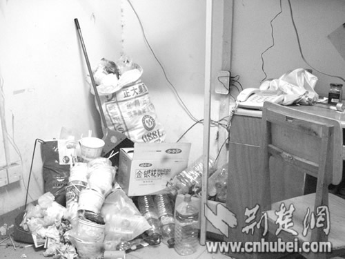 據(jù)記者了解,B棟所住的均為該校的男大學(xué)生。這行粉筆字寫(xiě)在樓道的地上,記者趕到時(shí),字跡已經(jīng)十分模糊了。在知情學(xué)生的指引下,記者進(jìn)入6樓一間寢室。一進(jìn)門(mén),一陣怪味就撲面而來(lái)。四下仔細(xì)一看,寢室門(mén)后一個(gè)高近一米的垃圾堆赫然出現(xiàn)在記者眼前:用過(guò)的飯盒、塑料袋,甚至是煙頭、飲料瓶,各式垃圾堆滿(mǎn)一地。但在這種環(huán)境下,寢室里的4個(gè)男生卻好像絲毫沒(méi)有察覺(jué),上網(wǎng)、看書(shū)不亦樂(lè)乎。該寢室學(xué)生小程告訴記者,他們每天的學(xué)習(xí)任務(wù)都比較重,課余時(shí)間一些同學(xué)又流連網(wǎng)絡(luò),因此大家平時(shí)都不愿意做清潔,寢室里形成這么個(gè)垃圾堆也“不足為奇”!安贿^(guò)通常我們隔一個(gè)月會(huì)清除一次的!毙〕陶f(shuō),冬天把垃圾堆在寢室里也沒(méi)多大關(guān)系,夏天會(huì)清除得比較及時(shí)。而小程所說(shuō)的“清除”,就是把垃圾從室內(nèi)掃到寢室門(mén)口堆放,等宿管做清潔的時(shí)候一并清理。“其實(shí)我們的生活垃圾是應(yīng)該自己拿到樓下的垃圾桶里扔掉的,但很多同學(xué)為了省事,就直接把垃圾堆在門(mén)口,這樣增加了宿管做清潔的勞動(dòng)量,最后才發(fā)生了她們寫(xiě)‘大字’抱怨的事情。”