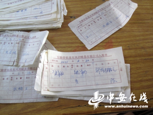 李校長還給記者出示了今年收取260元費(fèi)用的收據(jù),收據(jù)上居然印著“安徽省臨泉東風(fēng)調(diào)味品有限公司入庫單”的字樣,上面寫著學(xué)生的姓名、班級和所交的260元費(fèi)用,每一張右下角都是用相同筆跡簽了一個(gè)“周”字,據(jù)李校長介紹簽“周”字的人是陳子玉的兒媳婦,她負(fù)責(zé)來學(xué)校收錢。