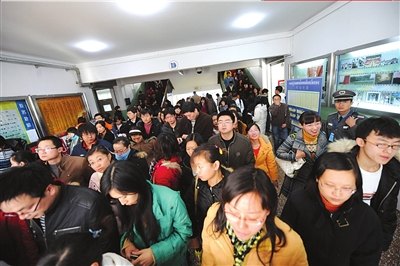 離考試還有1小時(shí),在海淀區(qū)育英學(xué)?键c(diǎn),很多考生已經(jīng)提前趕到。等待進(jìn)入考場(chǎng)的一位滿(mǎn)姓考生正抓緊最后時(shí)間翻看《參考消息》,以獲取更多信息。“為備考公務(wù)員,我已辭掉公司市場(chǎng)推廣工作3個(gè)月了,還上了補(bǔ)習(xí)班,這次是背水一戰(zhàn)!睗M(mǎn)先生說(shuō),這是他大學(xué)畢業(yè)4年后第一次參加考試,感覺(jué)有些緊張。