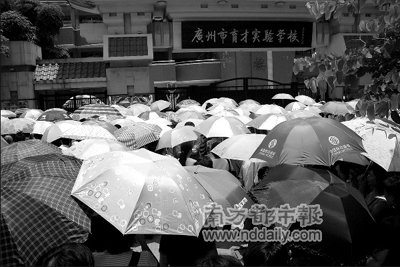 在育才實(shí)驗(yàn)學(xué)校門口,從佛山開車過來的李女士告訴記者,他們一個(gè)早上跑了3個(gè)地方才找到考場(chǎng),“一開始以為是育才中學(xué),跑到那邊才知道弄錯(cuò)了,后來又跑去了附近的第109中,第三次才找到這里!