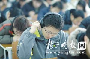 本次考試江蘇省共設223個考點、26212個考場,134所高校的780489名考生報名參加考試,比去年同期增加108450人,增幅16%,報考規(guī)模再創(chuàng)新高,仍居全國第一。圖為江蘇工業(yè)學院的一名考生正在調(diào)試耳機。 楊素平 攝