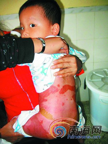 小志的母親黃春秀對(duì)記者說,她和丈夫楊昌奇不久前從定安來到海口打工,在義興街租房居住,幾個(gè)月前把小志從定安接到?冢譀]時(shí)間照顧孩子,就把他送進(jìn)了附近的育才幼兒園,平時(shí)小志在幼兒園食宿。10月14日晚上,她突然接到幼兒園電話說孩子被燙到了。她和丈夫立刻趕到187醫(yī)院,看到孩子被燙掉的皮粘在被子上,非常慘。