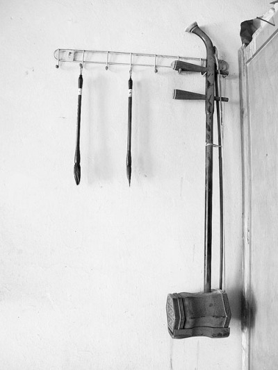 劉萬芳死后,同事蔣得地把手風(fēng)琴鎖進(jìn)了皮匣。他清晰地記得,兩人的最后一次唱和發(fā)生在去年六一兒童節(jié)匯報(bào)演出。此后,劉萬芳“高血壓”纏身,加之事務(wù)繁忙,二胡被束之高閣,再也沒拉響,如今,它已是塵埃滿布,再也發(fā)不出聲響。