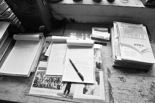 他死后,人們在他的家中,發(fā)現(xiàn)了7本尚未批改完的學(xué)生作文本。批改作文的眉批,字跡工工整整,他會一絲不茍地給學(xué)生們寫下評語:“注意句子之間的停頓和標(biāo)點(diǎn)的運(yùn)用”、“書寫認(rèn)真,語句生動(dòng)感人”。
