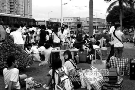 前天中午,廣東輕工職業(yè)技術(shù)學(xué)院的300多名大學(xué)生到深圳打暑期工,卻發(fā)現(xiàn)待遇與招工時的承諾相差甚遠(yuǎn)。錢沒賺到,還交了100元的包車費(fèi),學(xué)生們無奈滯留在深圳寶安區(qū)松崗文化廣場。最后,街道辦工作人員墊錢雇車送同學(xué)們返校,組織者也同意把包車費(fèi)退回。