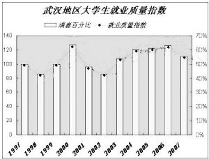 對(duì)2007年就業(yè)的2000名應(yīng)屆本科畢業(yè)生進(jìn)行的隨機(jī)問卷調(diào)查顯示,這批工作滿1年的畢業(yè)生就業(yè)滿意率為54.4%,此前就業(yè)滿意率一度從2002年的42%升到2006年的61.9%。