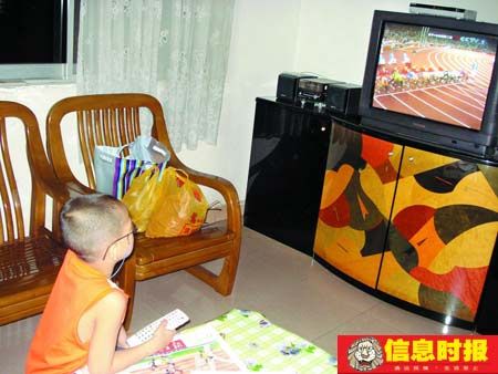 奧運雖好看,可居住在星匯園的張女士這兩天卻有點擔心了。開學就讀五年級的兒子軒仔是個體育愛好者,這個暑假為了看奧運,連之前一直吵著的云南十日游都放棄了:從奧運開幕至今,軒仔每天唯一的活動項目就是盤在沙發(fā)里抱著遙控器調(diào)來調(diào)去,從一早的《朝聞天下》看到晚上十一點多鐘的《全景奧運》,中途去趟洗手間軒仔都會一路小跑。
