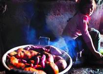 孫家有5畝地,各種一半的紅薯和苞谷,不夠全家5口人和1頭肥豬的口糧,在短暫的雨季,能種一些白菜、青豆和小瓜。旱季來(lái)臨,吃的只有早先曬干的白菜,這個(gè)時(shí)候?qū)O父需要去村外的礦山里打3個(gè)月工,每天30元工錢(qián),用來(lái)買些大米和供3個(gè)孩子入學(xué)。