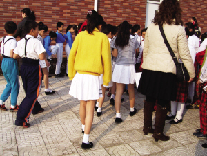昨天下午,記者和宋女士一起來到比賽所在的虎山路小學,在這里,三十多支參賽隊伍的上千名學生都要穿著夏裝跳集體舞。