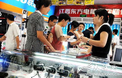 電腦、手機、MP3已經(jīng)成為目前一些家庭經(jīng)濟條件較好的大學生的“新三樣”,成為學生新學期的新裝備。某商場的一名導購員告訴記者,開學前的這段時間是數(shù)碼產(chǎn)品的銷售旺季,各商家均紛紛采取各種促銷手段來吸引學生群體。正在南昌市一電子數(shù)碼城購買MP3的大一學生小王告訴記者,考上大學時父母就答應(yīng)給她買手機和MP3,今天和媽媽一起出來挑選。