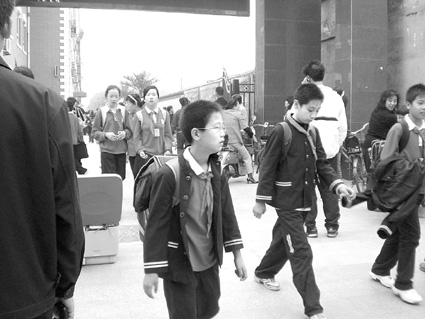 10月15日下午,身著統(tǒng)一校服的石家莊市某小學學生放學走出校園