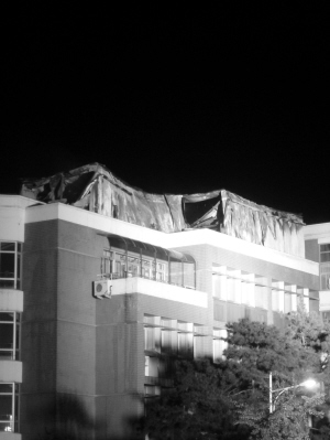 昨夜10時(shí),記者趕到中國(guó)農(nóng)業(yè)大學(xué)東校區(qū)南門。走到教學(xué)區(qū)內(nèi),樓間的空氣中彌漫著大量的濃煙。此時(shí),食品科學(xué)與營(yíng)養(yǎng)工程學(xué)院教學(xué)樓周圍50米范圍都拉起了警戒線,十余輛消防車警燈齊閃,數(shù)十名消防隊(duì)員正拖著水管緊急向樓頂噴灑著水柱。該教學(xué)樓高五層,樓頂處的火光依稀可見。至晚10時(shí)10分,明火被撲滅,大火將頂層建筑部分燒得歪歪斜斜,濃煙在夜空中形成了一道煙柱。