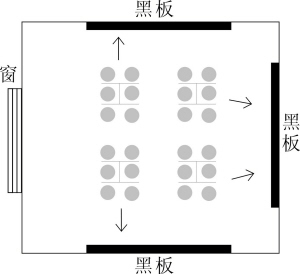 你相信嗎,稍稍改變一下課桌椅的排列次序,也能給學(xué)生的學(xué)習(xí)能力帶來(lái)幫助,“亮羽課堂教學(xué)模式”首先需要教室發(fā)生質(zhì)的變化。勇進(jìn)中學(xué)初一年級(jí)一共有八個(gè)班,參與課堂教學(xué)實(shí)驗(yàn)的其中四個(gè)班就在2號(hào)教學(xué)樓的一樓。