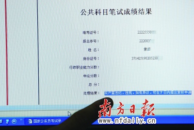 1月9日下午,因人保部網(wǎng)絡(luò)“塞車”,數(shù)次通過上網(wǎng)查“國(guó)考”成績(jī)不得的易長(zhǎng)安,花了一元錢通過短信查詢自己的分?jǐn)?shù),結(jié)果出乎他的意料:行政職業(yè)能力測(cè)試0分,申論51分,短信說明:“您本次考試有違紀(jì)行為”。一夜的忐忑后,1月10日,易長(zhǎng)安起早到辦公室的電腦查詢考試成績(jī),“公共科目筆試成績(jī)結(jié)果” 打開后,易長(zhǎng)安傻了眼,行政職業(yè)能力分?jǐn)?shù)和申論分?jǐn)?shù)都沒有分。成績(jī)結(jié)果的尾端附著處理結(jié)果:“有嚴(yán)重違紀(jì),違規(guī),如有異議,可在7日內(nèi)提出復(fù)核!