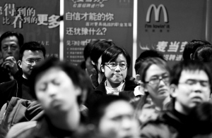 由于麥當勞的招聘并沒有專業(yè)限制,記者注意到,在昨日的招聘會上,很多與餐飲、管理完全不相關專業(yè)的學生也坐在會場。“我是控制理論與科學專業(yè)的”,一位北京大學的研究生小雷告訴記者,他找工作不只盯著對口專業(yè)。事實上,很多招聘單位也不再把應聘者的專業(yè)放在最重要位置。