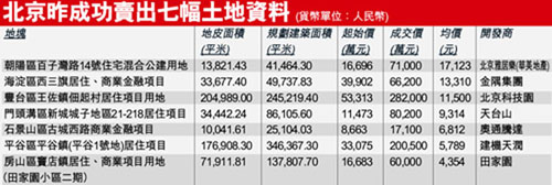 中新網(wǎng)12月31日電 北京30日拍賣(mài)七塊土地,香港《文匯報(bào)》報(bào)道稱(chēng),這可能是內(nèi)地2009年最后一次土地拍賣(mài)。雖然中央近日一再出招抑樓市,但這場(chǎng)拍賣(mài)面積小、好地段少、起步價(jià)低的拍賣(mài)會(huì),仍延續(xù)近來(lái)房地產(chǎn)狂熱,七塊土地成交額達(dá)77.7億元人民幣(下同)。