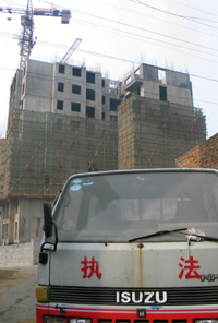 鄭州市行政執(zhí)法局監(jiān)察支隊隊長焦凱旋向記者介紹說,這八幢樓占地30多畝,在沒有取得建設和規(guī)劃許可證的情況下,就上了六支施工隊伍上千人進行建設,執(zhí)法人員多次制止未果,直到今年9月份仍然在施工。執(zhí)法人員采取了暫扣工具、出動車輛堵住施工入口等辦法,才停止施工。