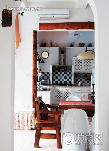 為適應地中海家居寬廣悠遠的感覺,小米在空間改造上動了“干戈”:在原來客廳與餐廳連通的開放式的大空間里,運用加法,在戶門入口處幾平方米的地方加蓋了一個拱形門廊,分隔出玄關和客廳;在客廳與餐廳中間,也加建了一道墻體,在兩旁分別開出一個小拱門,拱門是典型的地中海家居元素之一,令空間更顯天然、浪漫,然后他又將原來的廚房改成衛(wèi)生間,將原來的衛(wèi)生間改成開放式廚房,廚房緊連著戶外的庭院,光線更充足,更有法式鄉(xiāng)村風味;而廚房與餐廳的過渡,就以那幾條自然粗獷的木柱框出門廊;二樓也同樣做了不少變動,原來走廊上的第一個房間打通成開放式的會客偏廳,原來的浴室改成衣帽間,原來的套房內的衣帽間就變身成為浴室,連帶將陽臺也打通,這樣一來室內光線更顯明媚,視覺上更通透,更統一,各個空間既相牽系亦各自獨立,更有層層遞進的視覺驚喜,功能與美學珠聯璧合。