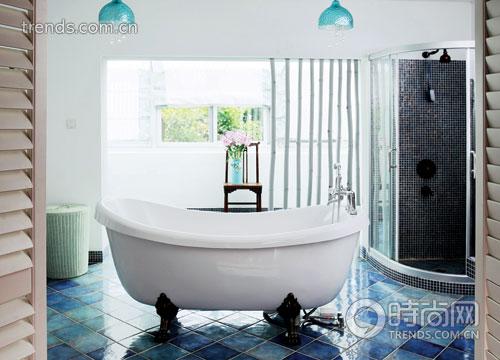 細節(jié)是小米比較關注的。主浴室兼顧了清潔與休閑兩個功能,地面是湛藍湛藍的光面磚,白色的墻身,延續(xù)著地中海的藍與白,“因為浴室最重要的功能是放松,所以選擇的色系盡量簡單純凈,用刷白了的竹子作為大空間的隔斷,主要是做視覺上的劃分,分隔出清潔區(qū)與休閑區(qū):清潔區(qū)就是浴缸及洗手盆那一區(qū),主要突出功能的一面;我將陽臺打通,做出一個女性都會喜歡的陽光花房作為休閑空間,雅致的淡綠色布簾幔與窗外的綠意相合。浴室就是身心放松的空間,是我設計里比較注重的地方!