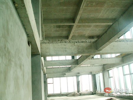 B棟塔樓頂部樓板鑿痕清晰可見