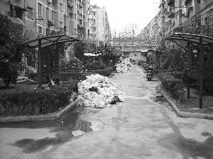 “現(xiàn)在最大的問題是保潔和保安!毙^(qū)業(yè)主委員會負(fù)責(zé)人傅先生說,寧工新寓是一個有著1000戶居民的大小區(qū),由于物管突然撤離,大量生活垃圾無人清掃清運,只得堆在樓前、綠地的空曠處,十多天下來,小區(qū)已是臟亂一片,“再這樣下去,肯定臭翻天!”