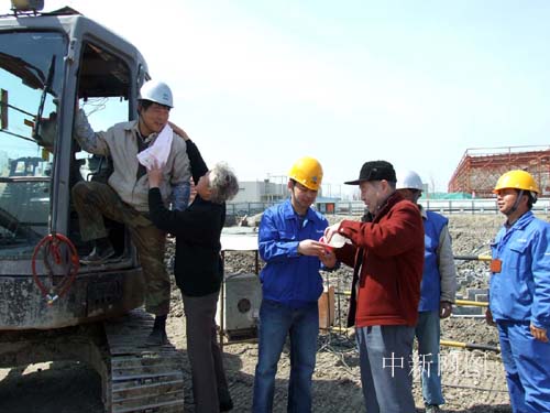 中新網(wǎng)上海4月3日電 (舒祖康)昨天上午,上海市浦東新區(qū)上鋼社區(qū)的近80名離休老干部來到了附近的世博工地,在建設(shè)中的盧森堡館前,向?qū)氁惫綜1標(biāo)工程世博建設(shè)者送上毛巾、茶杯和書籍等慰問品。這些年過古稀的“老革命”們?cè)诖思恼Z世博建設(shè)者:“我們來就是為你們打氣、鼓勁。希望你們把世博場(chǎng)館建設(shè)得更好!