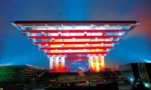 何鏡堂:我們主要從三方面著手。一是“中國印象”,主要是從繪畫、戲劇、文字、顏色等藝術(shù)形式中捕捉中國形象,中國館的整體就選用了極具中國特色的“中國紅”;二是“出土文物”,如從斗冠、寶鼎等器皿中汲取靈感,中國館分國家館和地區(qū)館兩部分,其中國家館的造型,就是通過對斗拱這一傳統(tǒng)建筑構(gòu)件進行挖掘與提煉后設(shè)計出的;三是“城市園林”,從中國的城市建筑、園林中吸收營養(yǎng),例如九宮格、南北軸線等,形成經(jīng)緯分明的建筑布局。
