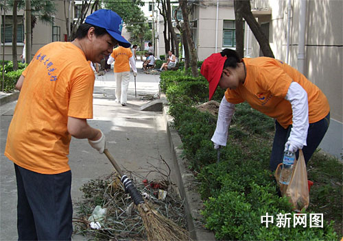 中新網(wǎng)上海7月15日電(鄭瑩瑩 田佳)十五日是上海迎世博的“環(huán)境清潔日”,一大早,毗鄰中國(guó)館的浦東世博社區(qū)周家渡街道就開(kāi)始整潔社區(qū)“容貌”大作戰(zhàn),百余名志愿者身著橙色衣服,清理社區(qū)衛(wèi)生死角,讓社區(qū)內(nèi)刮過(guò)一陣“清潔風(fēng)”。