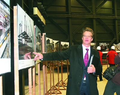 日前,上海世博會(huì)加拿大館舉行揭牌儀式。加拿大總理斯蒂芬·哈珀、加拿大政府總代表大山、上海世博會(huì)中國(guó)政府總代表華君鐸等出席儀式。揭牌儀式前,中國(guó)電視觀眾熟悉的大山親自當(dāng)起了解說(shuō)員,帶領(lǐng)中外媒體走進(jìn)已經(jīng)封頂?shù)募幽么箴^,提前感受這個(gè)“活著的城市”。