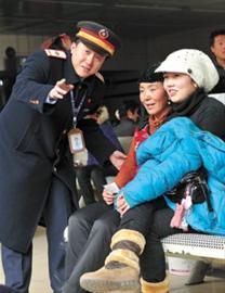 “您好,有什么需要為您服務(wù)的嗎?”在鐵路上海站售票大廳的 “程薇服務(wù)臺”,全國用戶滿意服務(wù)明星從上珠正熱情招呼著一位70多歲的老人。老人想要了解從上海開往香港九龍的列車時刻表,從上珠很快從電腦中調(diào)出資料,給了老人滿意的答復(fù)。從上珠告訴記者,老弱病殘?jiān)械戎攸c(diǎn)關(guān)注人群在他們這里購票后,如需相關(guān)的接送服務(wù),他們會與設(shè)在進(jìn)站大廳的 “張慶桓服務(wù)臺”聯(lián)系,由工作人員負(fù)責(zé)護(hù)送到候車室,并向所搭乘列車的列車長進(jìn)行告知,給予特殊照顧。