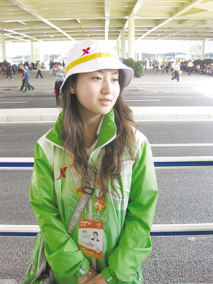 張筠老家在江西,是復旦大學視覺藝術學院的大一學生,標準的90后女孩。通過網(wǎng)上報名并獲得任用后,她成為了上海世博會首批志愿者,而如果再細分則可稱作“高峰期志愿者”。“每天早上7點半不到就得到園區(qū),晚上下班時間不定,至少10點以后吧。”張筠告訴記者,她每天要做的,就是站在這處位于商業(yè)中心最繁華的街角,為任何有需要的游客提供力所能及的幫助。接受采訪時,女孩才正式上崗短短半日,“已經(jīng)為至少20個游客指路,或是回答他們的一些咨詢。”