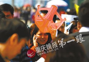 在浦西園區(qū)上海聯(lián)合企業(yè)館前,排隊(duì)的圍欄設(shè)計(jì)成了弧線,觀眾只需稍稍將身子一仰,就可以將背包等靠在圍欄上,節(jié)省體力。在一些排隊(duì)較長的展館前,志愿者不時上前提醒游客,用地圖或衣服遮住頭部。