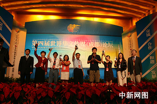 [主持人]: 獲得傳媒機(jī)構(gòu)優(yōu)秀獎(jiǎng)的有:關(guān)西華文時(shí)報(bào)(日本)、美中晚報(bào)(美國(guó))、亞省時(shí)報(bào)(美國(guó))