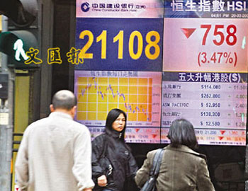 ·美股下跌拖累港股 恒指收市報(bào)21108點(diǎn)跌758點(diǎn)