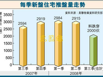 中新網(wǎng)7月7日電 據(jù)香港文匯報報道,美聯(lián)集團(tuán)表示,香港過去數(shù)季發(fā)展商推盤的單位數(shù)目相當(dāng)穩(wěn)定,近3季均維持約2900個單位左右的水平,預(yù)期第三季未會再有此類項目,加上近期樓市氣氛未及年初,因此相信第三季發(fā)展商推盤步伐會有所減慢,估計單位將跌穿2000個的水平,較第二季跌三成,并創(chuàng)5個季度的新低。
