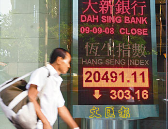 港股9日未能延續(xù)周一勁升860點的強勢,就算美股高收近300點,恒指也跟隨亞洲區(qū)股市下跌,剛開市已跌355點,最多跌近500點,下午跌勢喘定,收報20491點,跌303點,成交額比周一大減200億元至479.5億元。