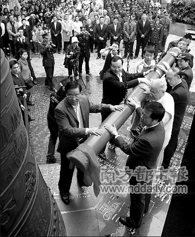 3月18日上午10時(shí),中英街博物館前,來自深港兩地的代表一齊撞響中英街的警示鐘,18聲悠長的鐘聲響徹中英街;在博物館另一側(cè)的中英街上,來自沈陽的一個(gè)旅行團(tuán)正在展示購物的收獲,掏錢較多的也不過是180元一條,印滿洋文的“雙喜”牌香煙。“太蕭條了,很失望”,一位游客說:“沒生意,沒法做了”,中英街一家店鋪的老板娘擺擺手對(duì)記者說。