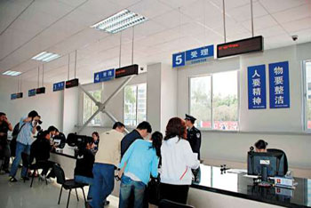 四月一日,深圳居民擴(kuò)大個人游香港試點(diǎn)啟動,同時該市公安局出入境辦證大廳啟用。 中國公安部決定,自2009年4月1日開始實(shí)施為深圳戶籍居民辦理一年多次往返香港個人旅游簽注,新政策將惠及除國家登機(jī)備案工作人員之外的二百二十多萬居民。 中新社發(fā) 陳文 攝
