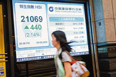中新網(wǎng)9月9日電 據(jù)香港《文匯報》報道,國家財政部8日宣布于月底來香港發(fā)行國債,令投資者憧憬中央挺港措施將陸續(xù)有來,增加投資信心,加上內(nèi)地股市“六連升”,上證重回2900點以上水平,在上述好消息帶動下,恒指最多升超過500點,令大市重上21000點水平,恒指收報21069.8點,升440.5點,升幅逾2%,成交714.8億元。