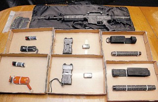 中新網5月28日電 香港警方27日在香港將軍澳一公屋單位搗破武器庫。據香港《文匯報》報道,一對無業(yè)李姓兄弟涉嫌藏有包括2支電槍、2支伸縮警棍及仿制長氣槍等攻擊性武器,當日清晨于睡夢中被接獲情報的警員趕到入屋拘捕,嫌犯母親也被拘捕一并帶回警署協(xié)助調查。