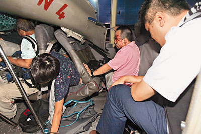肇事專線小巴為屯門(mén)新墟開(kāi)往上水火車(chē)站的頭班44A線小巴,慘死司機(jī)賴廣文,52歲;同車(chē)死亡的2名乘客包括53歲男子董耀文,及50歲女子孫秀蕓,其余傷者包括12男2女(19至59歲),其中27歲男子葉×林及34歲男子麥×文情況危殆,1男1女(24至42歲)傷勢(shì)嚴(yán)重。