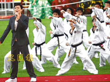 中新網(wǎng)5月5日電 據(jù)香港文匯報(bào)報(bào)道,香港各界青少年迎奧運(yùn)系列活動(dòng)委員會(huì)4日在香港大球場(chǎng)舉行“心系奧運(yùn).中華青年大聯(lián)歡”,劉德華、金培達(dá)、李克勤、方力申等香港藝人及內(nèi)地歌手周筆暢、王宏偉參與演出,陣容相當(dāng)龐大。