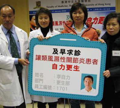 類風(fēng)濕關(guān)節(jié)炎是一種因自體免疫失調(diào)而令關(guān)節(jié)被侵蝕變形的慢性炎癥。目前,香港估計(jì)約有20000名類風(fēng)濕關(guān)節(jié)炎患者,男女比例為1:3。據(jù)香港醫(yī)管局?jǐn)?shù)字顯示,因此病而求診的個(gè)案由2004年的4239宗,增至2006年的2885宗,升幅達(dá)15%。