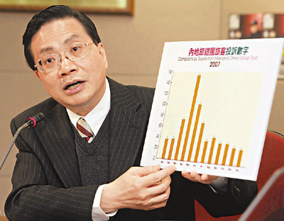 中新網(wǎng)1月22日電 綜合香港媒體消息,香港消費者委員會去年接到38000多宗投訴,創(chuàng)下歷年新高。位于投訴榜首的是電訊服務(wù),消委會共接獲超過10000宗投訴。消委會主席張炳良表示,將于下月向特區(qū)政府提交建議,規(guī)管各樣不公平、誤導(dǎo)和欺騙性的營商手法。