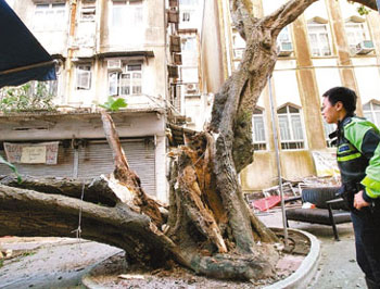 赤柱大街百年刺桐裂開(kāi)倒塌,致壓死少女。(圖片來(lái)源:文匯報(bào))